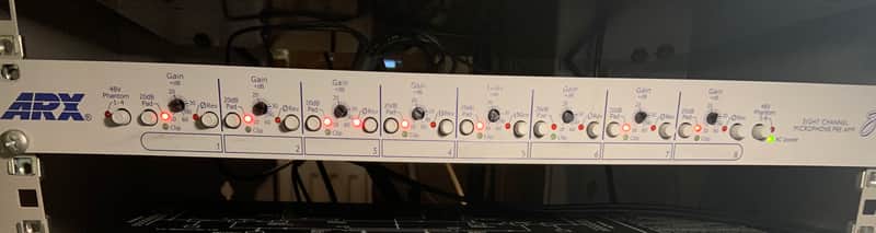 - ARX 8-pre 8 channel mic pre ampEach channel hasAdjustable gain from 10dB to 60dB20dB padPhase reverseClip indicatorPhantom power can be switched on...