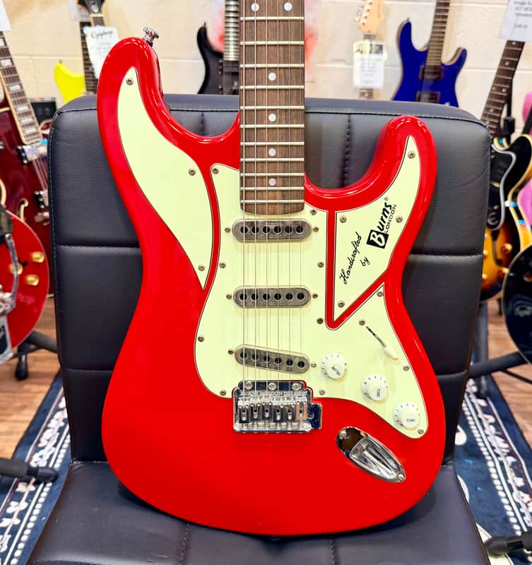 - Here we have a striking Burns London Cobra in Guards Red, a fantastic alternative to the usual Strat-style guitars with a unique look, feel and ton...