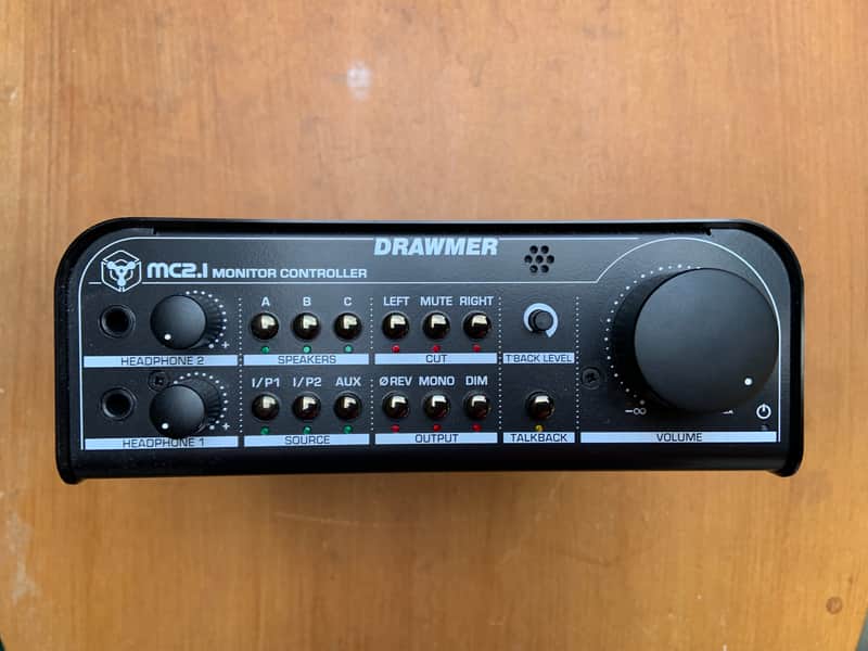 - Drawmer MC2.1 Stereo Monitor ControllerStereo or aux input can be routed to up to 3 different speaker pairsTwo headphone outputs plus built-in talk...