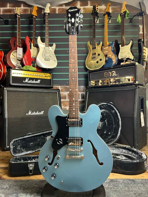 - Here for sale we have an Epiphone Dot Semi-Hollow Electric Guitar that has been refinished in Pelham Blue finish. Crafted in China, this guitar fea...