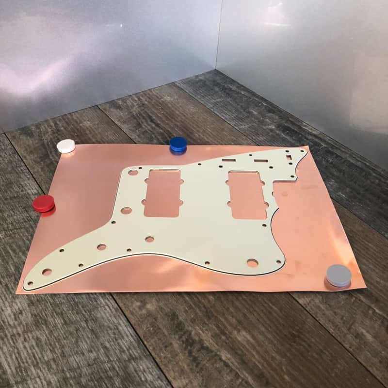 - Fender Jazzmaster Copper shielding pickguard sheet full sizeThese sheets are self adhesive backed. Cut the copper to size &