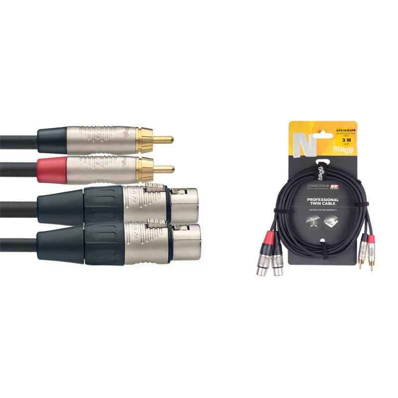 - Stagg NTC3CMXFR Twin male RCA to female XLR cable with colour coded connectors. Connectors: Male RCA Phono (x 2) to Female XLR (x 2) Length: 3 me...
