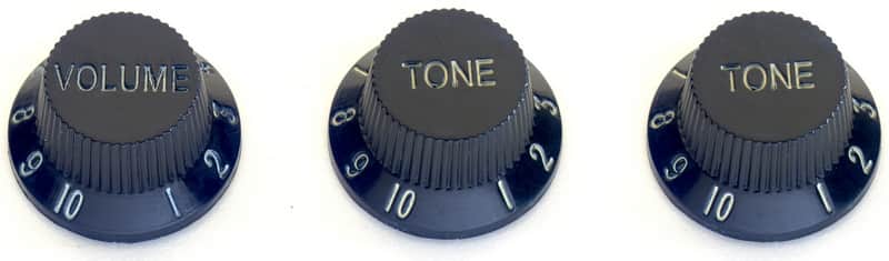 - Volume and tone knobs (x 2) for S type electric guitar, black, white letter