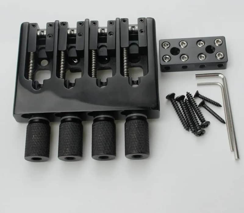 - Black 4 String Headless Bass Bridge System with Adjutsable Saddles