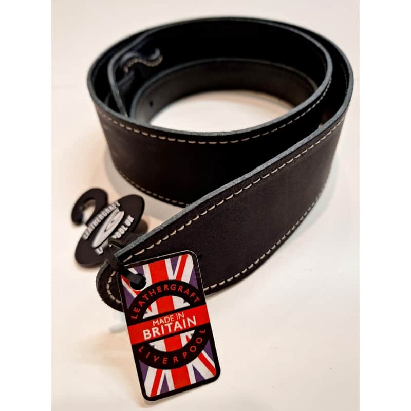 - Made in the UK. 2 inches wide, stitched leather guitar strap by Leathergraft.