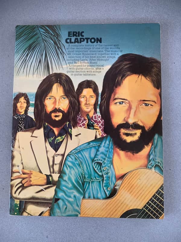 - Eric Clapton book from 1976 with lots of photos plus PVG scores of a selection of his best tracks - condition is good but some discolouration insid...